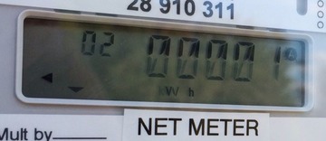 We’ve done this many times, but still get excited to see the first kilowatt hour sold back to the utility. This new-style meter used by Tri-County Electric Cooperative has a separate reading for electricity exported to the grid. The left-facing arrow on the lower left of the display indicates the array is currently exporting electricity.